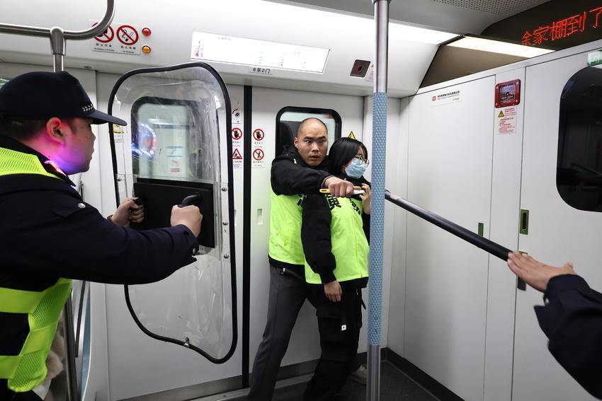 21时许策略宝,随着指令下达,演练正式拉开帷幕。在过江隧道内行驶中的8号线车厢,一名“歹徒”突然情绪激动,手持“凶器”挟持“人质”,威胁乘客安全。